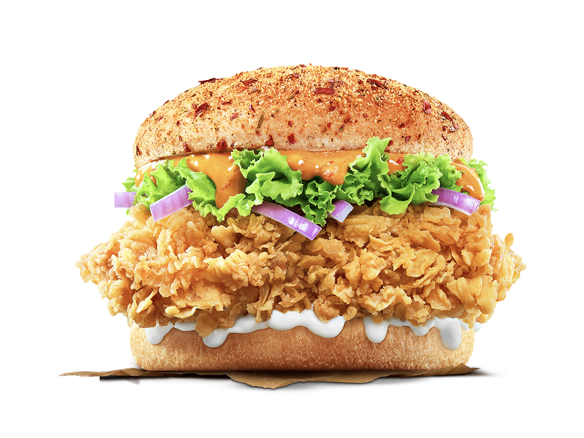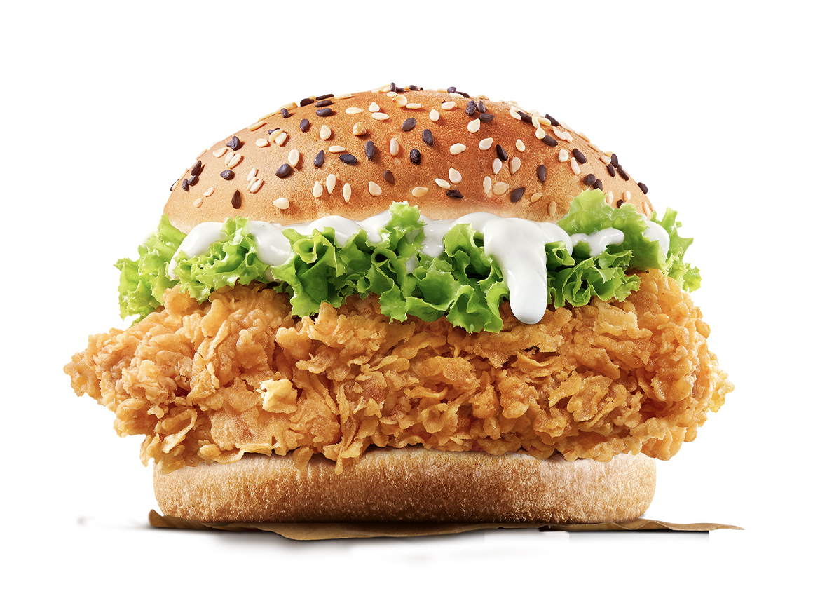 Signature burger made with a crunchy chicken fillet, veggies & a delicious mayo sauce
