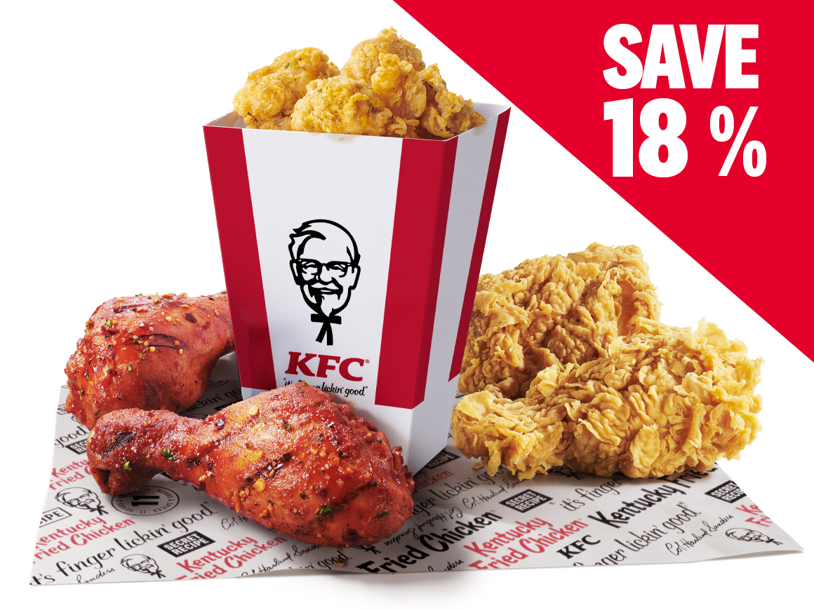 Save 29% on this variety bucket of 4pc Hot & Crispy chicken & 4pc Smoky Red chicken [serves 2- 3 ]