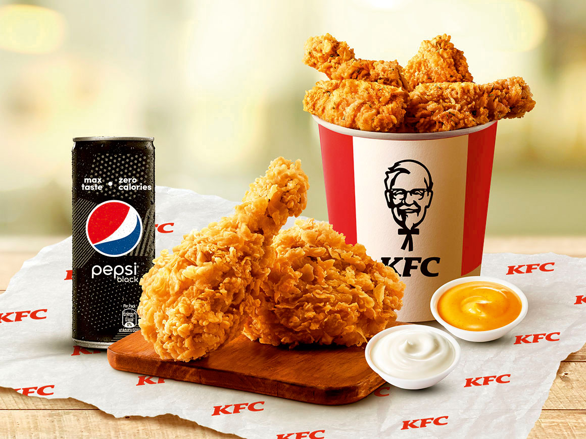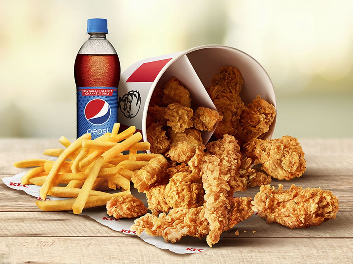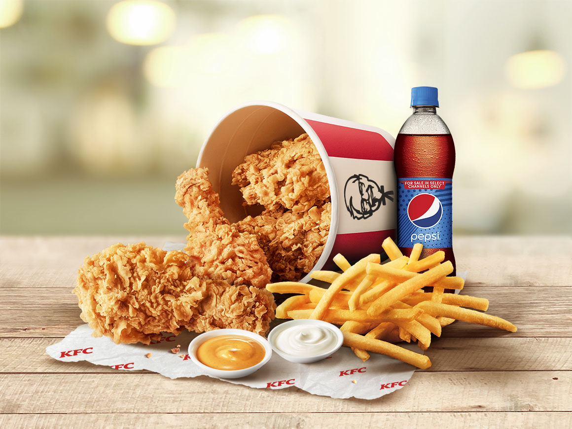 Save 33% on signature bucket of 4pc Hot & crispy, 6 Wings, 4 strips, 2 Dips & Pepsi PET [serves 2-3 ]