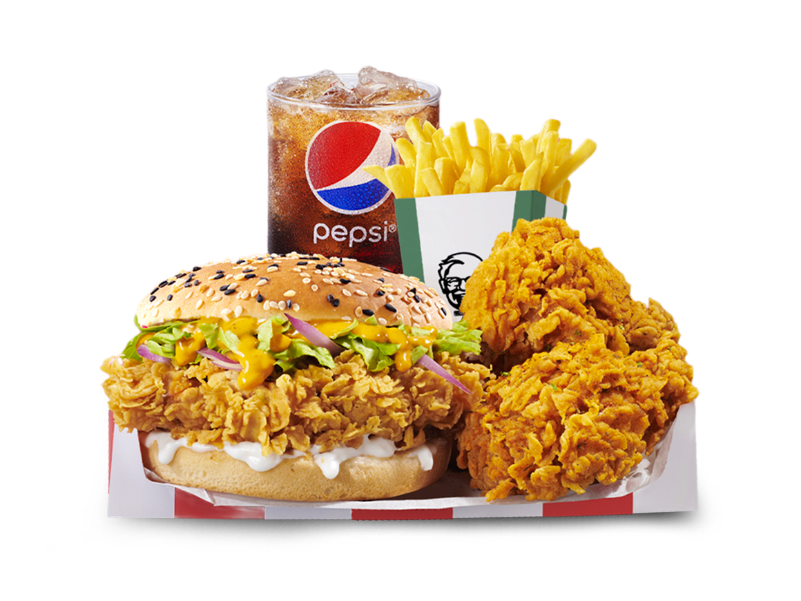 Favorite combo of Classic Zinger Burger, Medium Fries & a chilled Pepsi Black [serves 1]