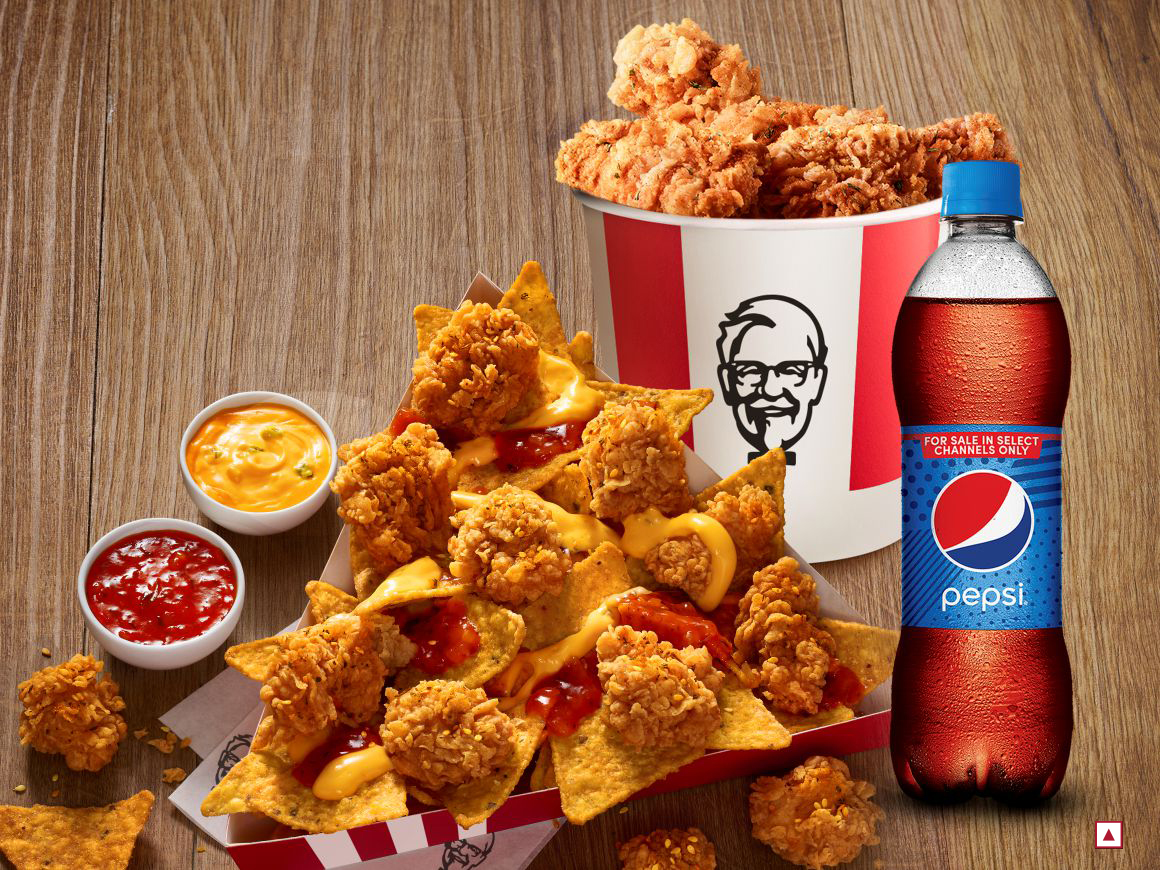 Two ka crunch, in one munch- for 2! Combo of 2 new Popcorn Nachos & a Pepsi PET [serves 2]